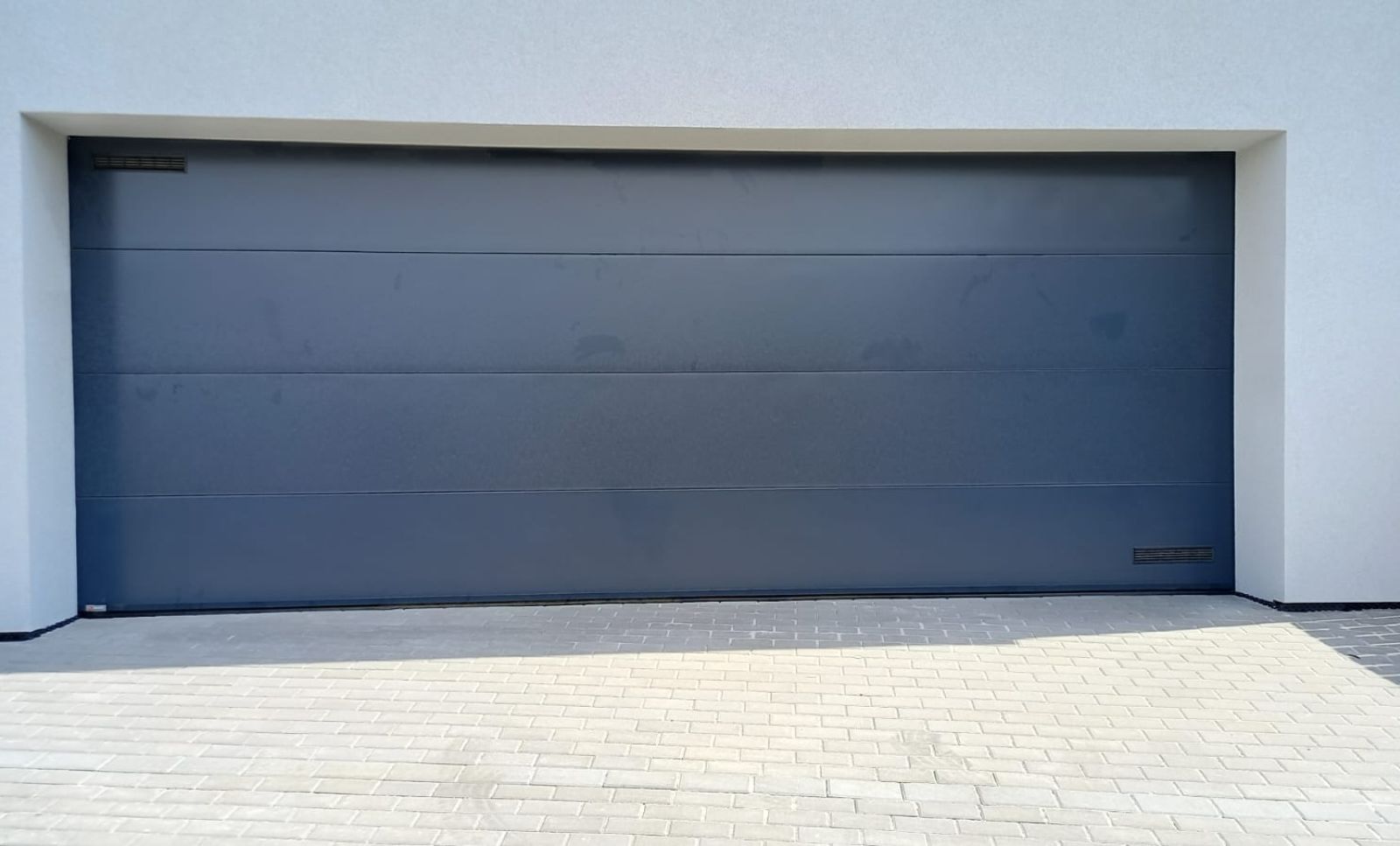 Sekční garážová vrata - rodinný domek pro firmu IK0, barva RAL 7016